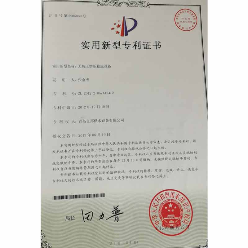 采用储能与释放调节装置双向补偿器,可自动对自来水管网进行持续水量补偿,还可以对用户管网起稳压补偿的作用,确保该设备对自来水管网不产生负压。